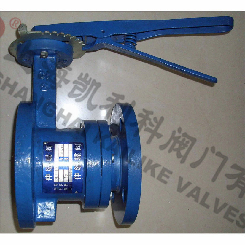 SD41X/SD43H手動伸縮蝶閥具有自動補償管道熱脹冷縮方便裝卸的功能,使用于溫度在425℃以下,公稱壓力在1.6MPa以下的石油、化工、電力、造紙、給排水和市政建設(shè)等工業(yè)管道上作調(diào)節(jié)流量和載斷流體的最佳裝置。