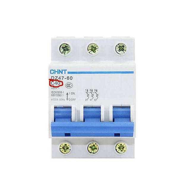 如果機(jī)器旁邊的閘跳了,查看機(jī)器閘空氣開關(guān)的額定電流是多少,如下圖,也就是C后面的數(shù)字,再對應(yīng)上表,如果不符合則要換相應(yīng)額定電流的空氣開關(guān),就需要更換40A或者50A的空氣開關(guān)。